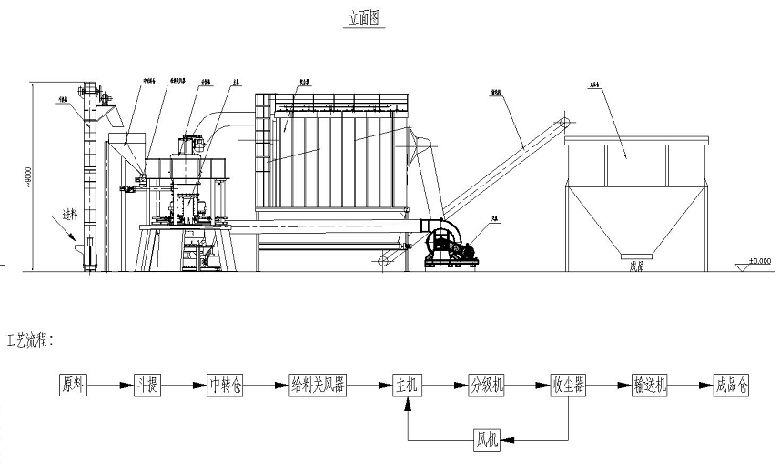 2、建設運行費用低,占地面積小,集破碎、干燥、粉磨、分級收塵于一體。